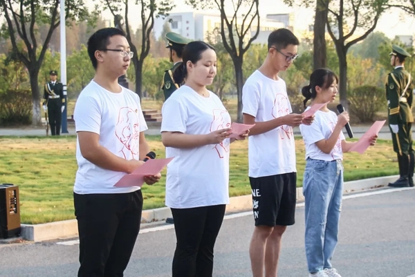 面对鲜艳的国旗,学生们庄严宣誓,始终高举马克思主义理论的旗帜,坚决拥护中国共产党的领导,耐心聆听恩师们的教诲,用心感受父母的恩情,心怀报效祖国之志,做新时代的德智体美劳全面发展的社会主义建设者和接班人。
