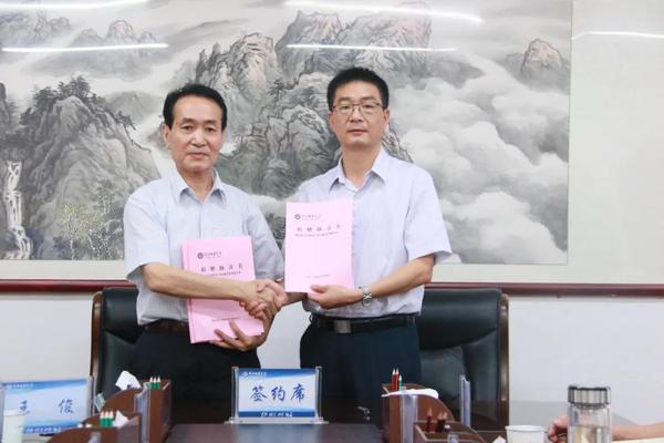 陈朝阳与彭道福签订捐赠协议,并代表学校接受湖北华莘实业集团有限公司捐赠资金200万元。